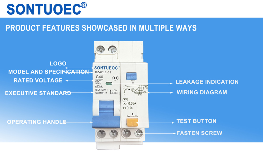 SONTUOEC er en av de kinesiske leverandørene/produsentene som spesialiserer seg på produksjon av forskjellige små elektriske apparater.DZ47LE gjelder for en linje med AC 50/60Hz merkespenning 230 V for enkelt polet to leder, 2 pol for til 2 pol for for 3 V e. 4 poler og merkestrøm opptil 63A. Den kan beskytte linjen og motoren mot overbelastning og kortslutning Den kan også brukes til sjeldne linjekonverteringer og sjeldne motorstarter. Den er i samsvar med standardene i IEC61009.1.